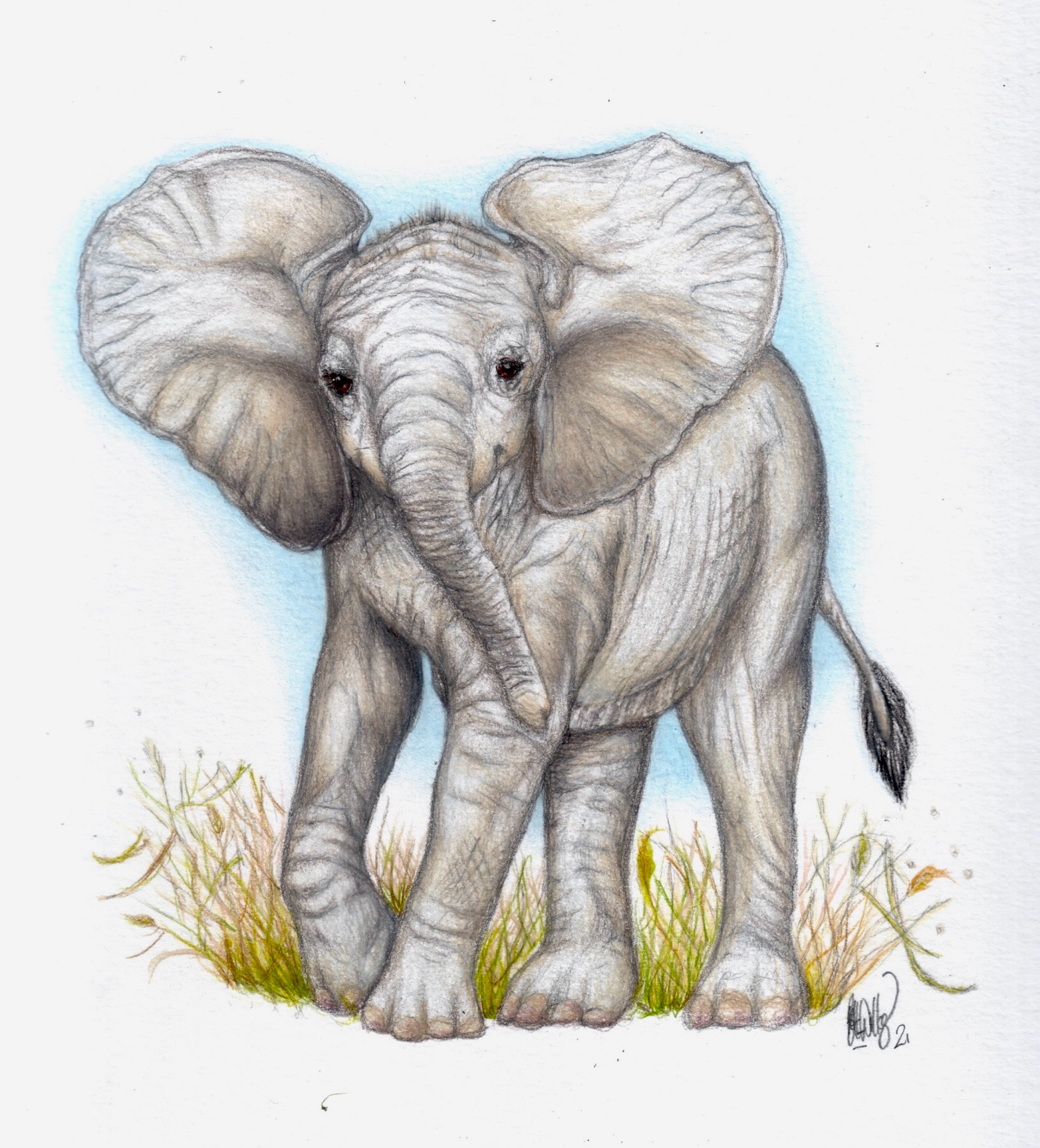 - African bush elephant calf (Loxodonta africana). Pachyderm in pastels. 9×12. >SOLD<