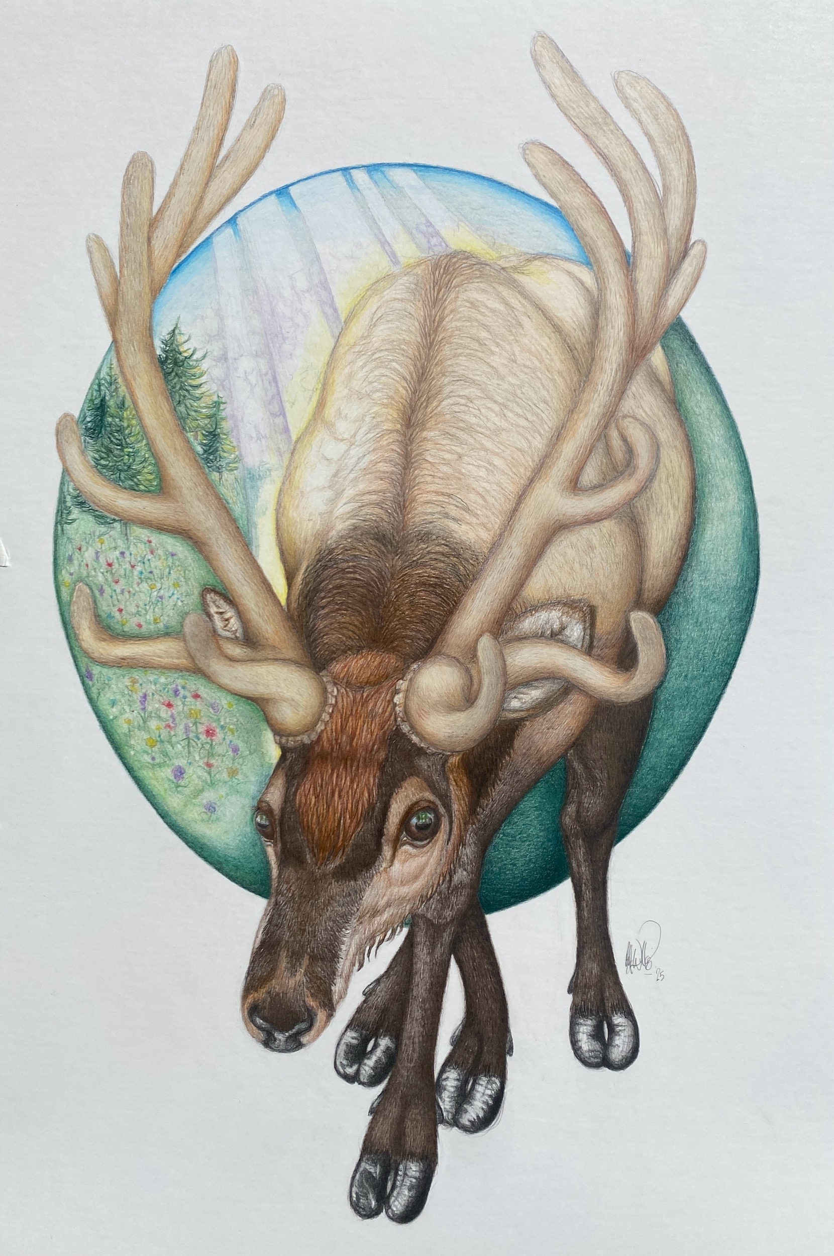 - wapiti (Elk, Cervus canadensis) in Spring velvet. 20×30. $800.