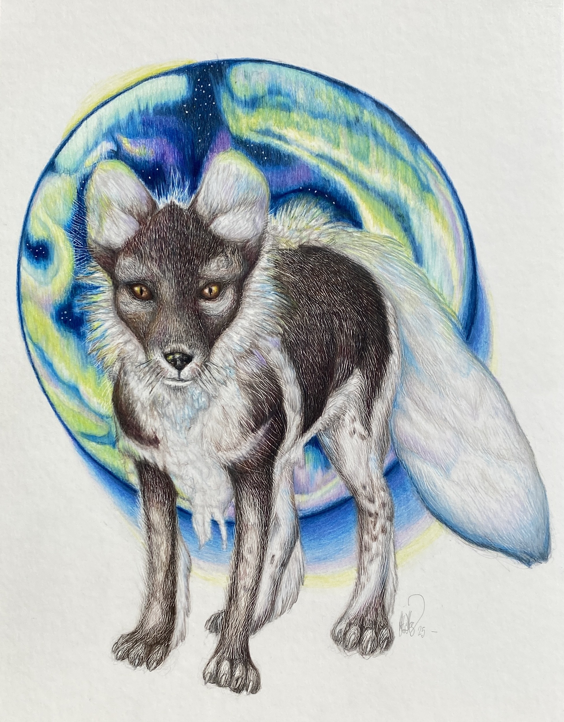 - Arctic fox, late Spring molt (Vulpes lagopus). 15×20. $400. Aurora goblin.