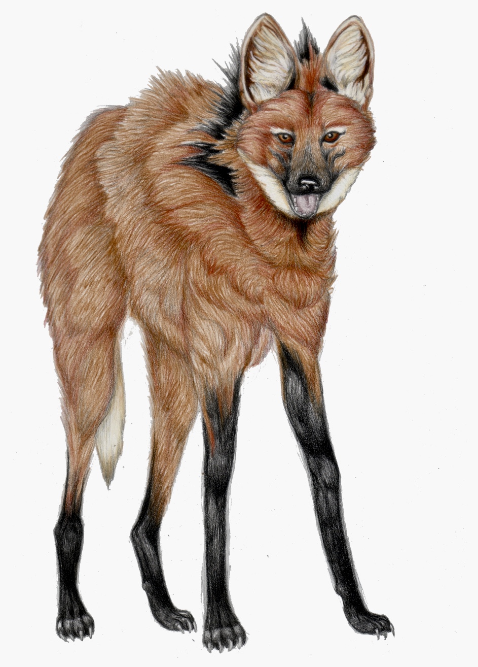 - Maned wolf (Chrysocyon brachyurus). 9×12. Neither a wolf nor a fox, the maned wolf belongs to its own genus, Chrysocyon: the golden dog. >SOLD<
