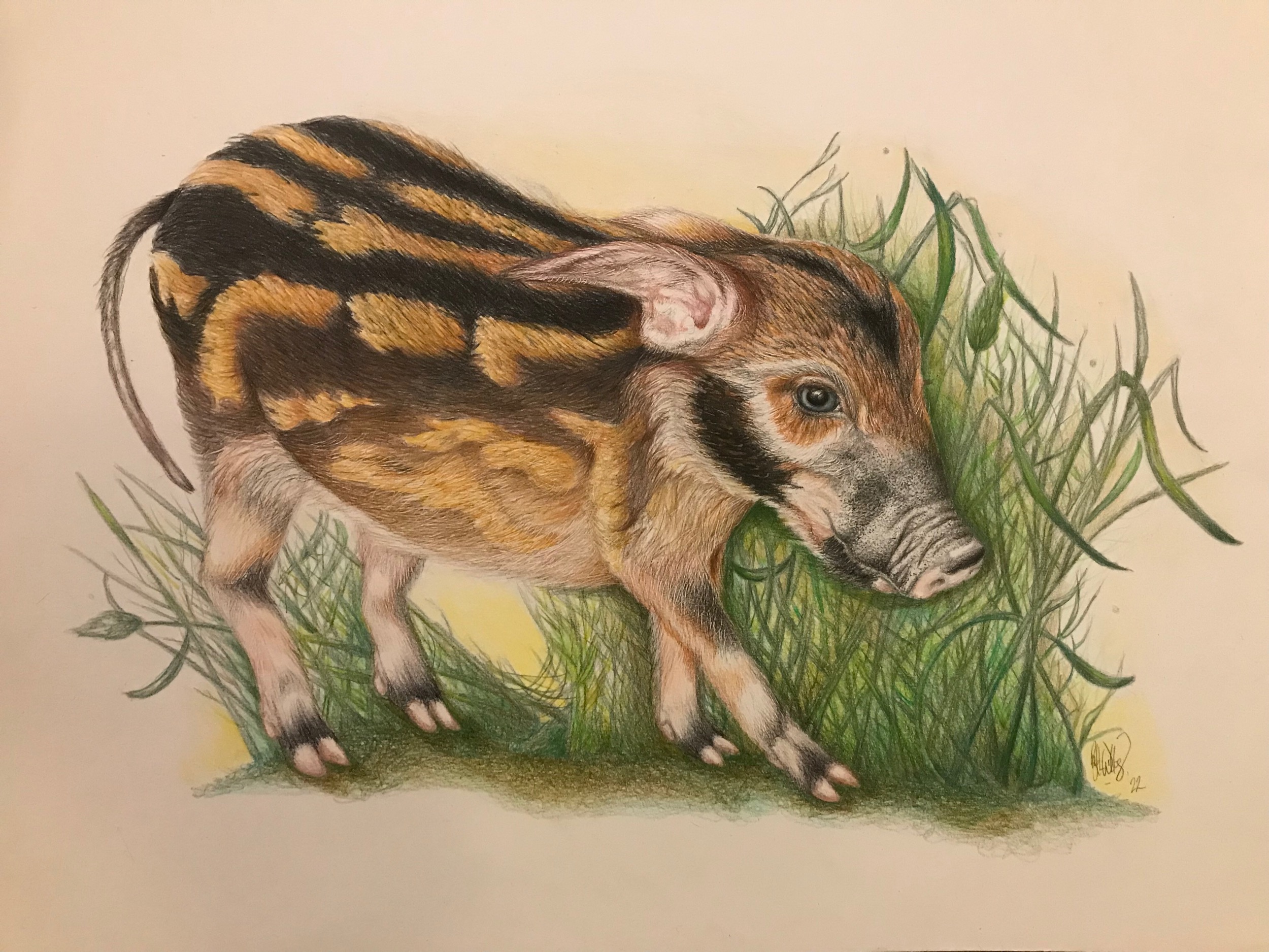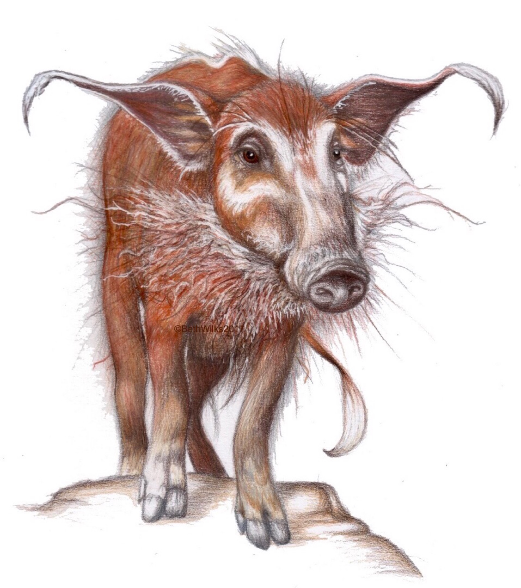 - Red river hog (Potamochoerus porcus). 11×14. $350. Porcine elegance.