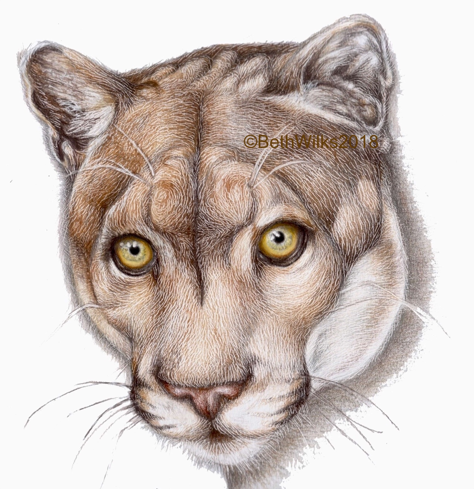 - Eastern cougar (Puma concolor couguar). 11×14. Extinct animal series. Liminal cat. >SOLD<