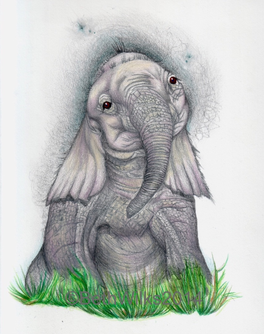 - African bush elephant calf (Loxodonta africana). 11×16. In shades of lavender and cream. >SOLD<