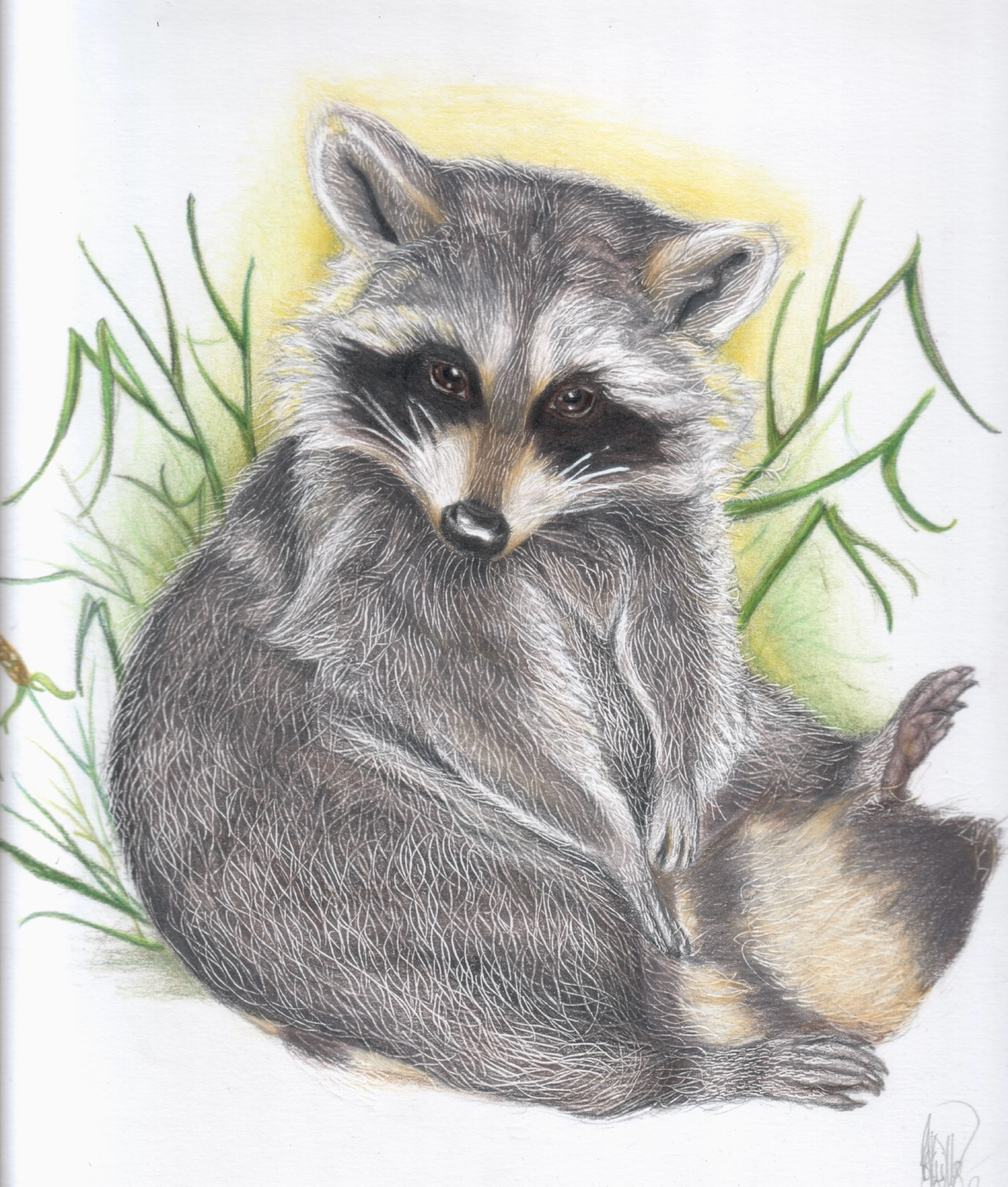 - Seated raccoon (Procyon lotor). 11×14. Urban kin. >SOLD<