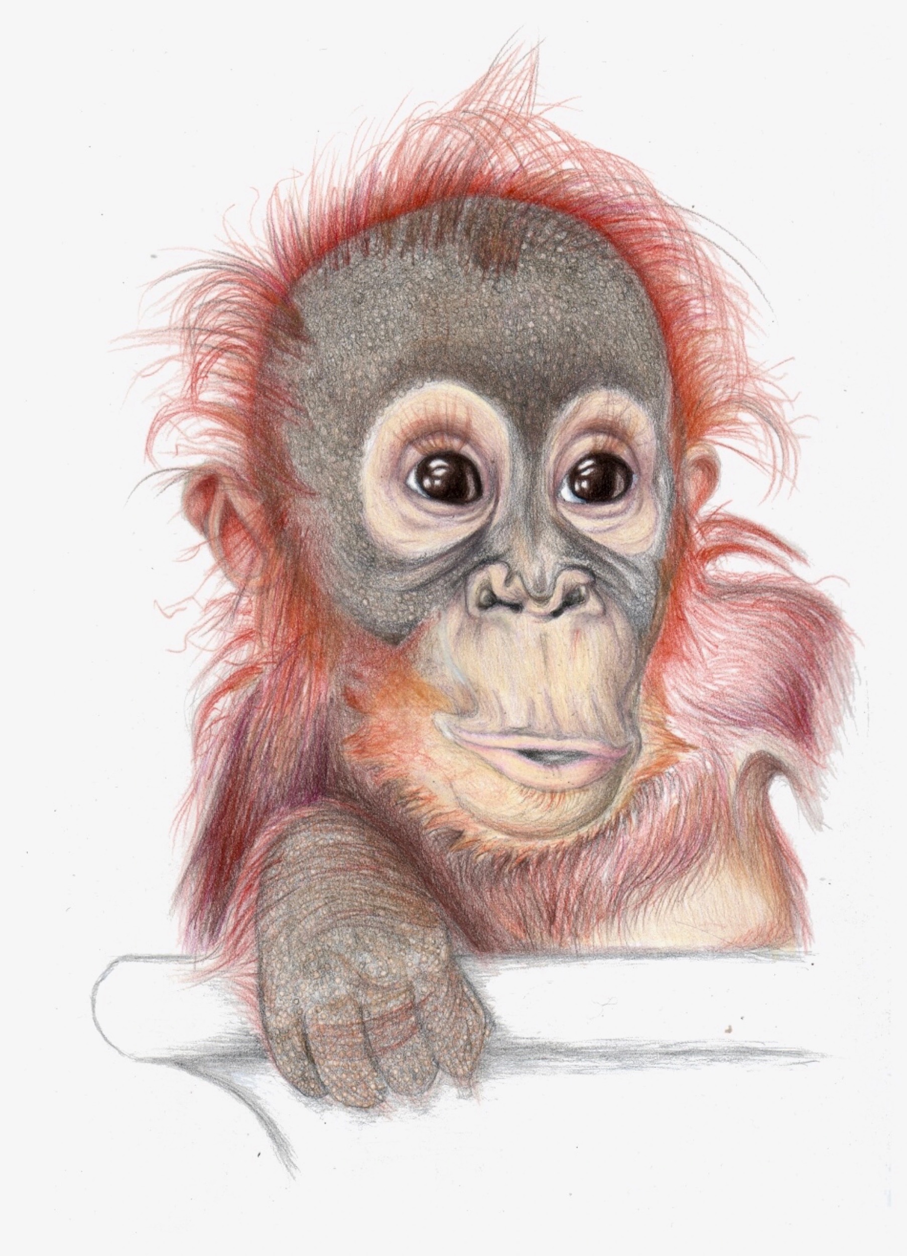 - Peanut. Infant orangutan (Pongo pygmaeus). 9×12. The one with the manga eyes. >SOLD<