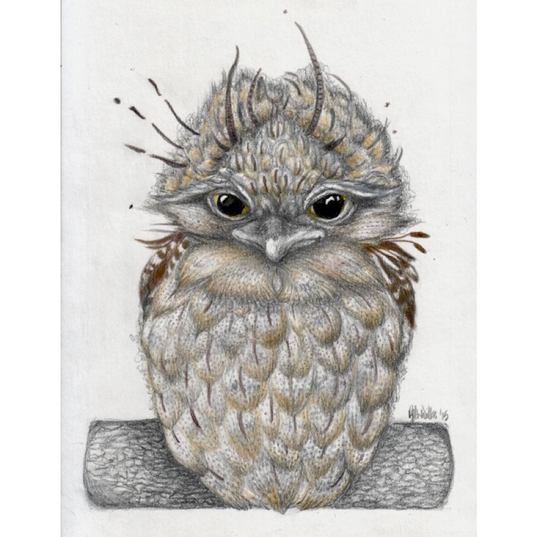 - Tawny frogmouth fledgling (Podargus strigoides). 7×9. $30. Our signature bird.