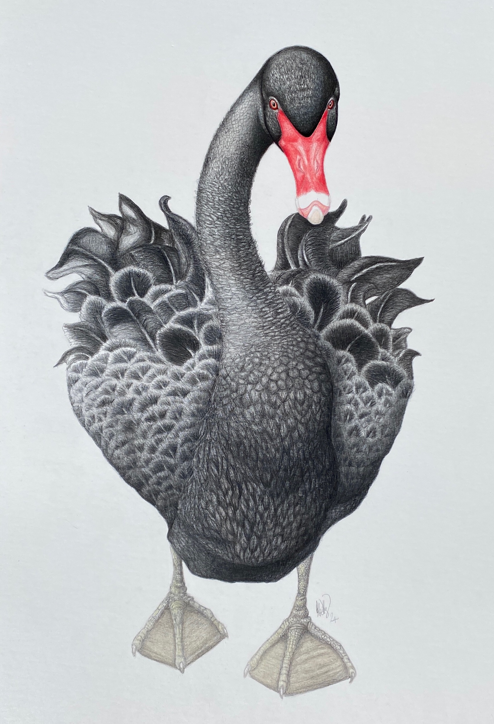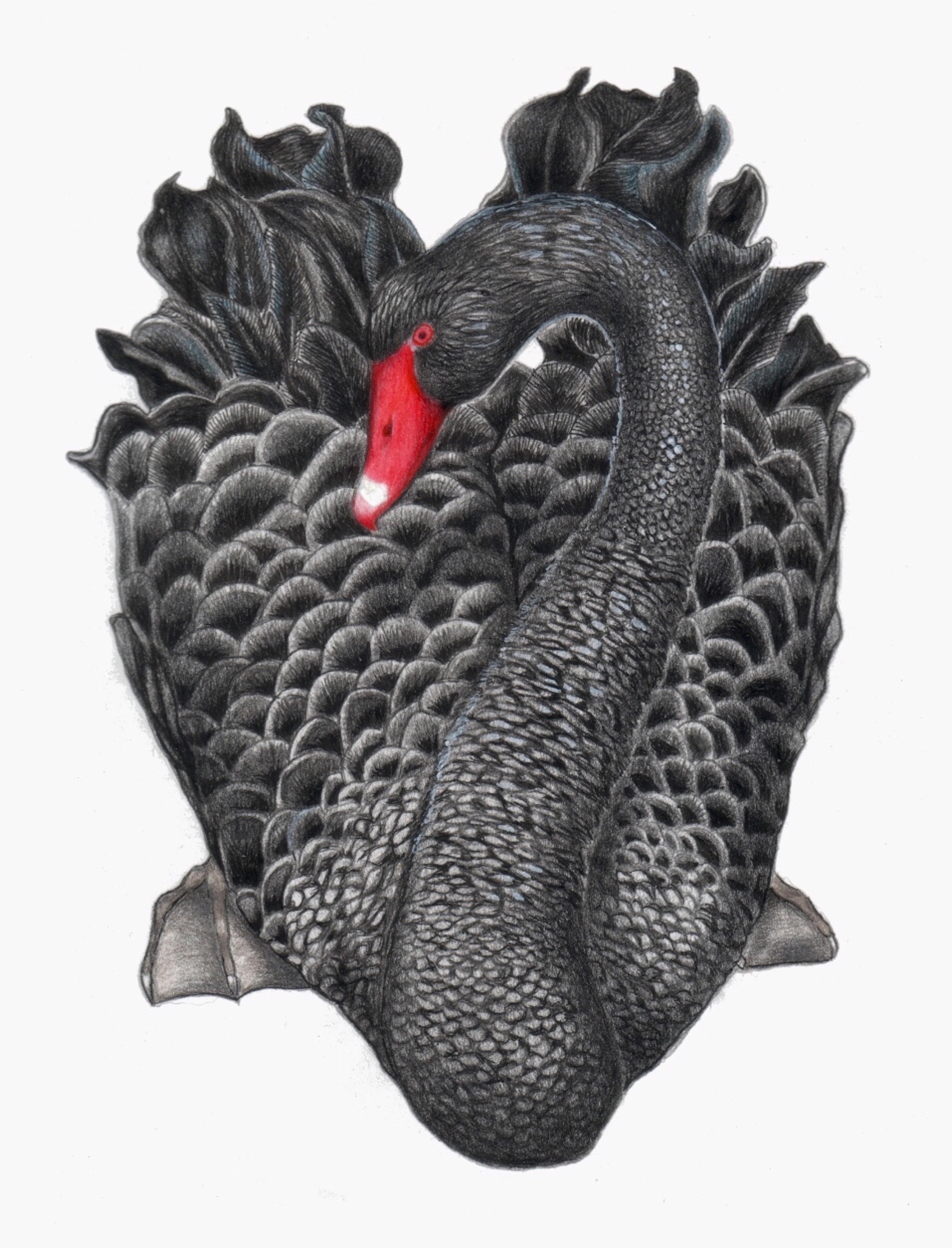 - Black swan/sacred heart (Cygnus atratus). 9×14. NFS. Ornate obsidian symmetry.
