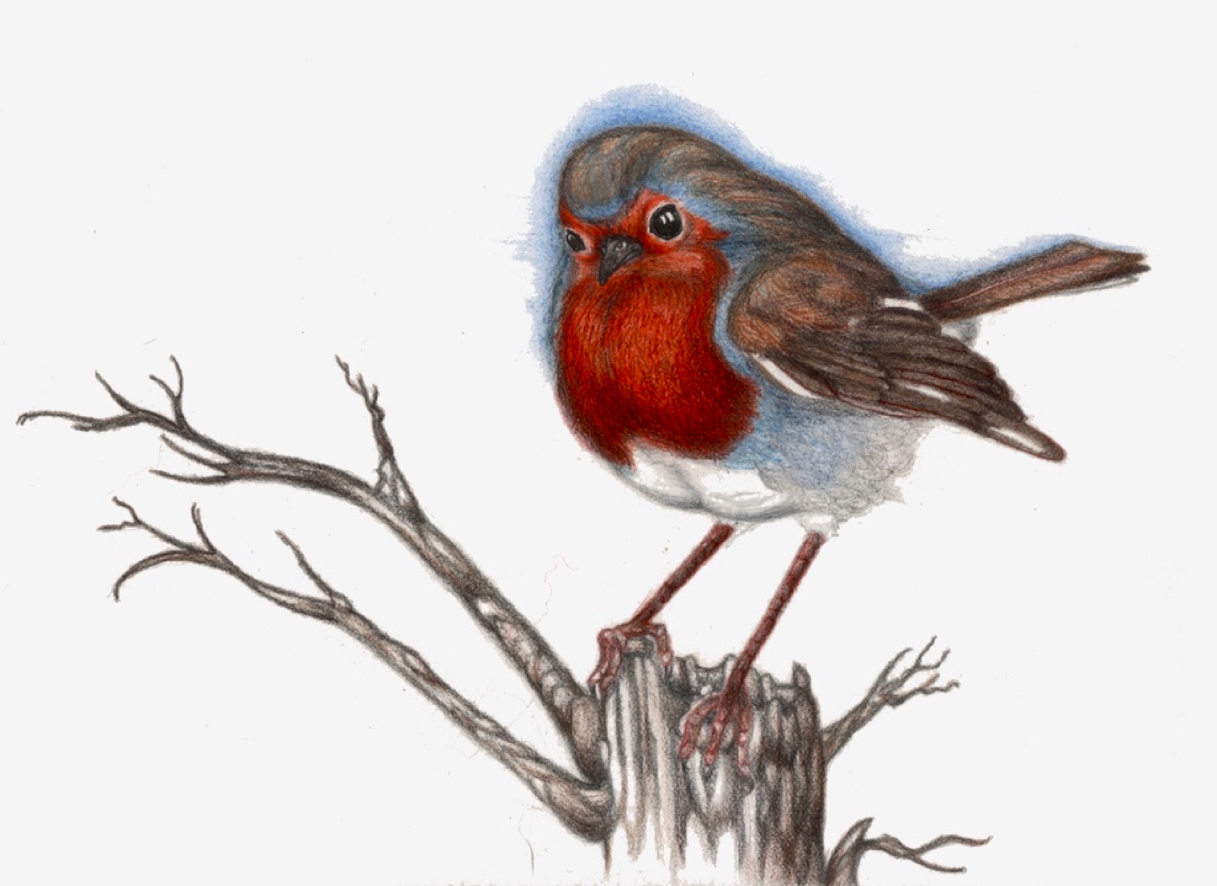 - Trio of robins triptych II: European robin (Erithacus rubecula). 7×9. NFS. Prints available. Gatekeeper of the Secret Garden.