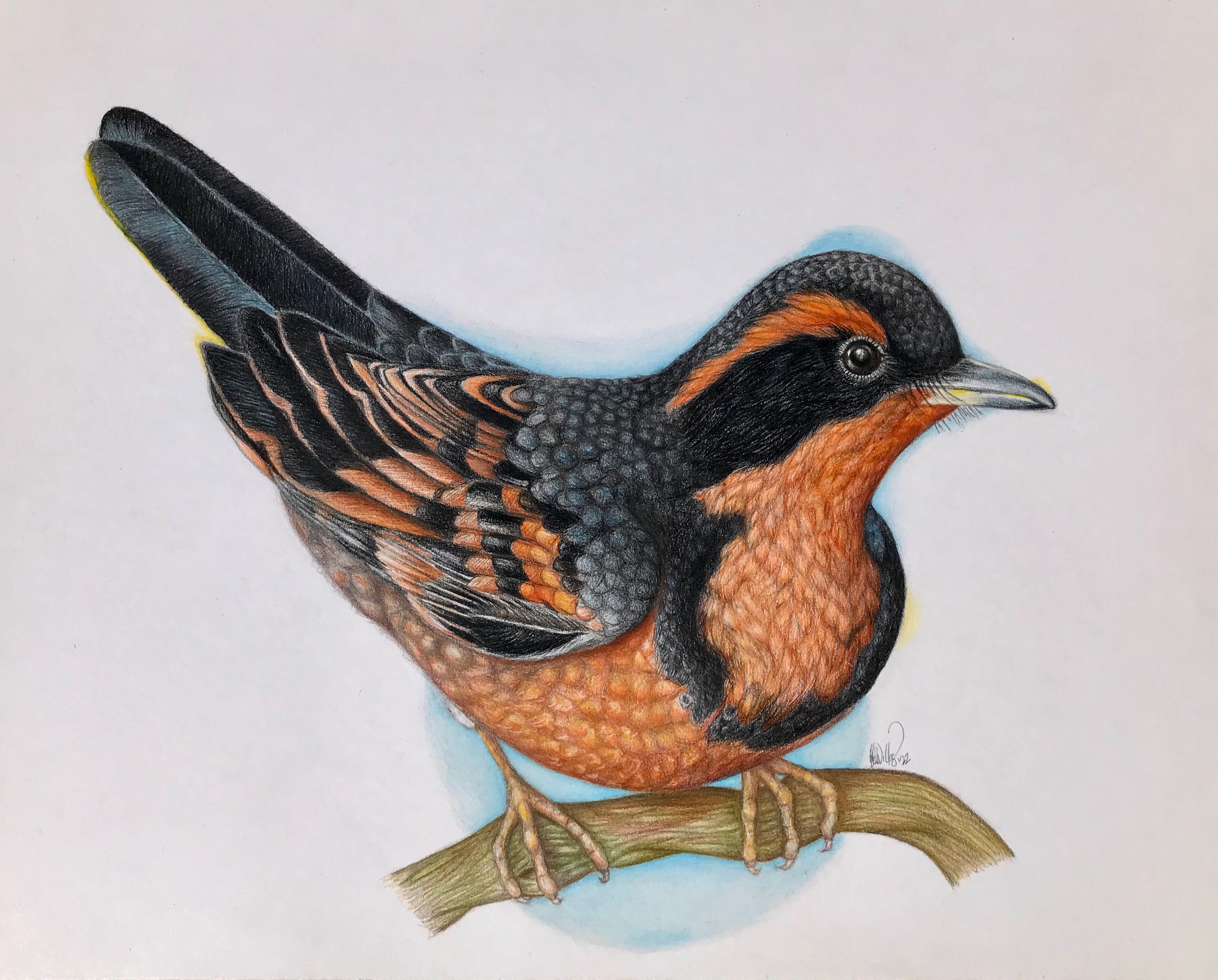 - Varied thrush (Ixoreus naevius). 16×20. $400. An audacious orange flame darts across your wintry backyard.