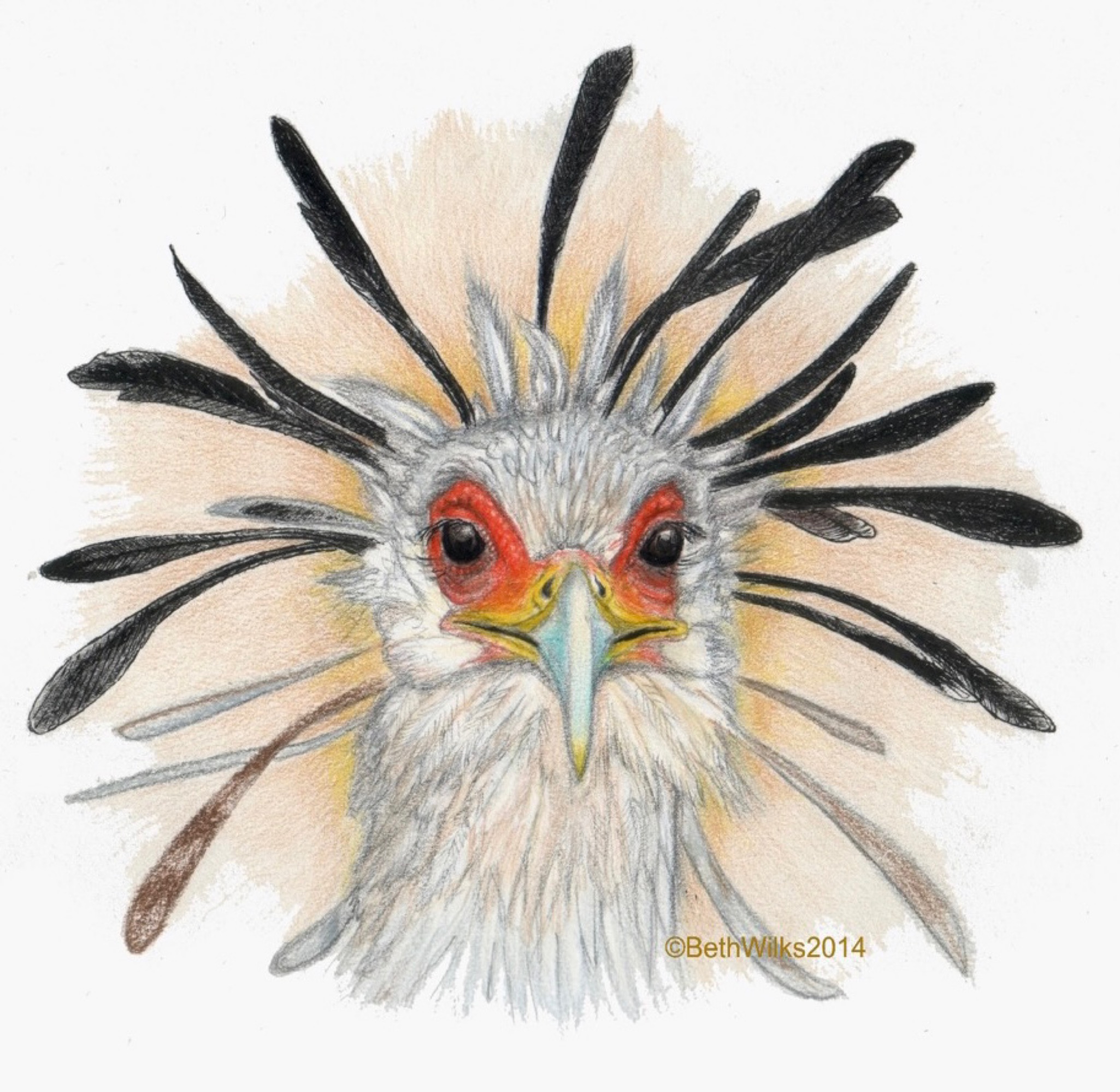 - Secretary bird (Sagittarius serpentarias). 9×12. NFS. Leggy showgirl.