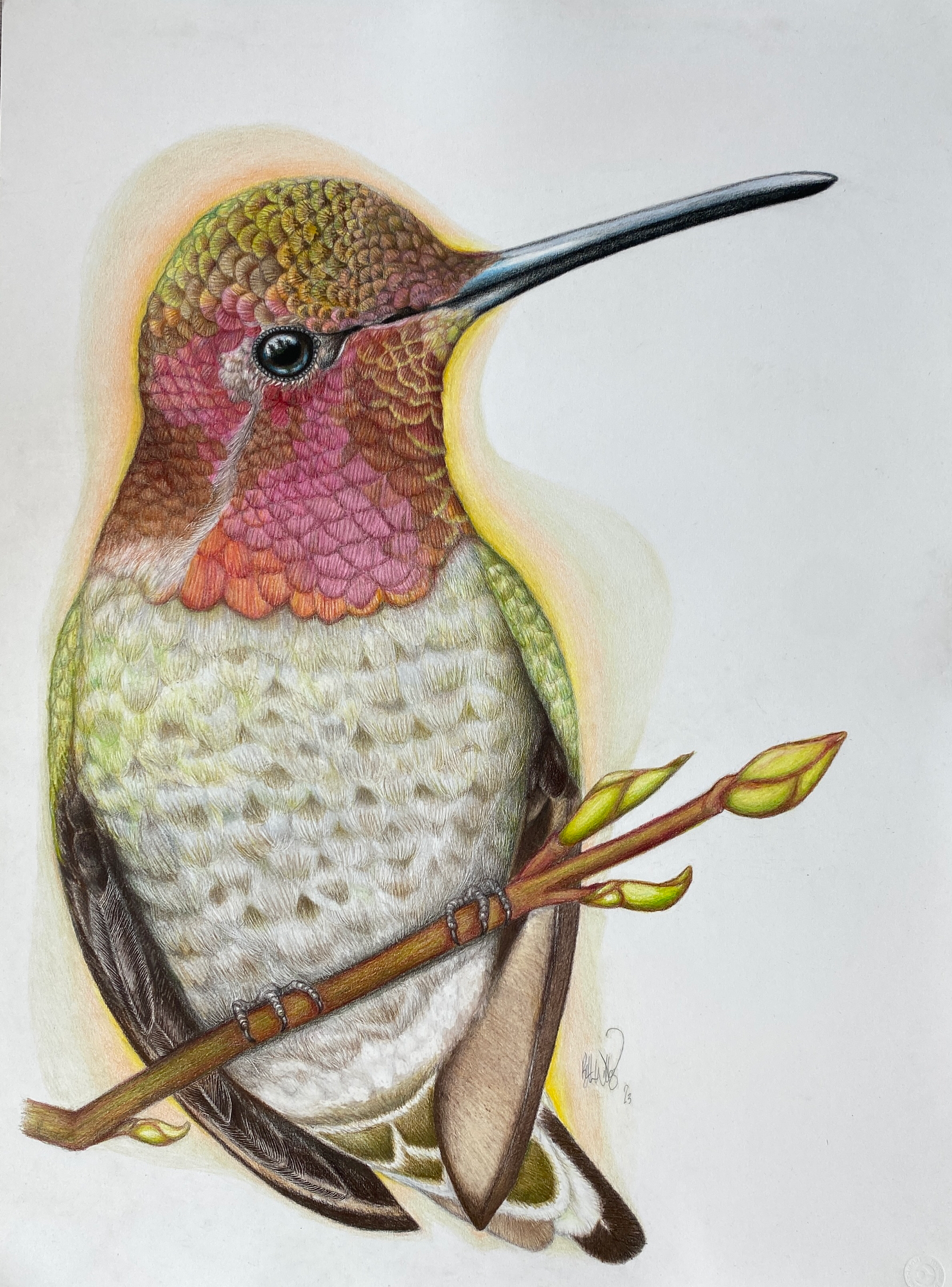 - Anna’s hummingbird (Sah Sen), (Calypte anna). 20×30. $900. Vancouver birb-gangsta. >SOLD<