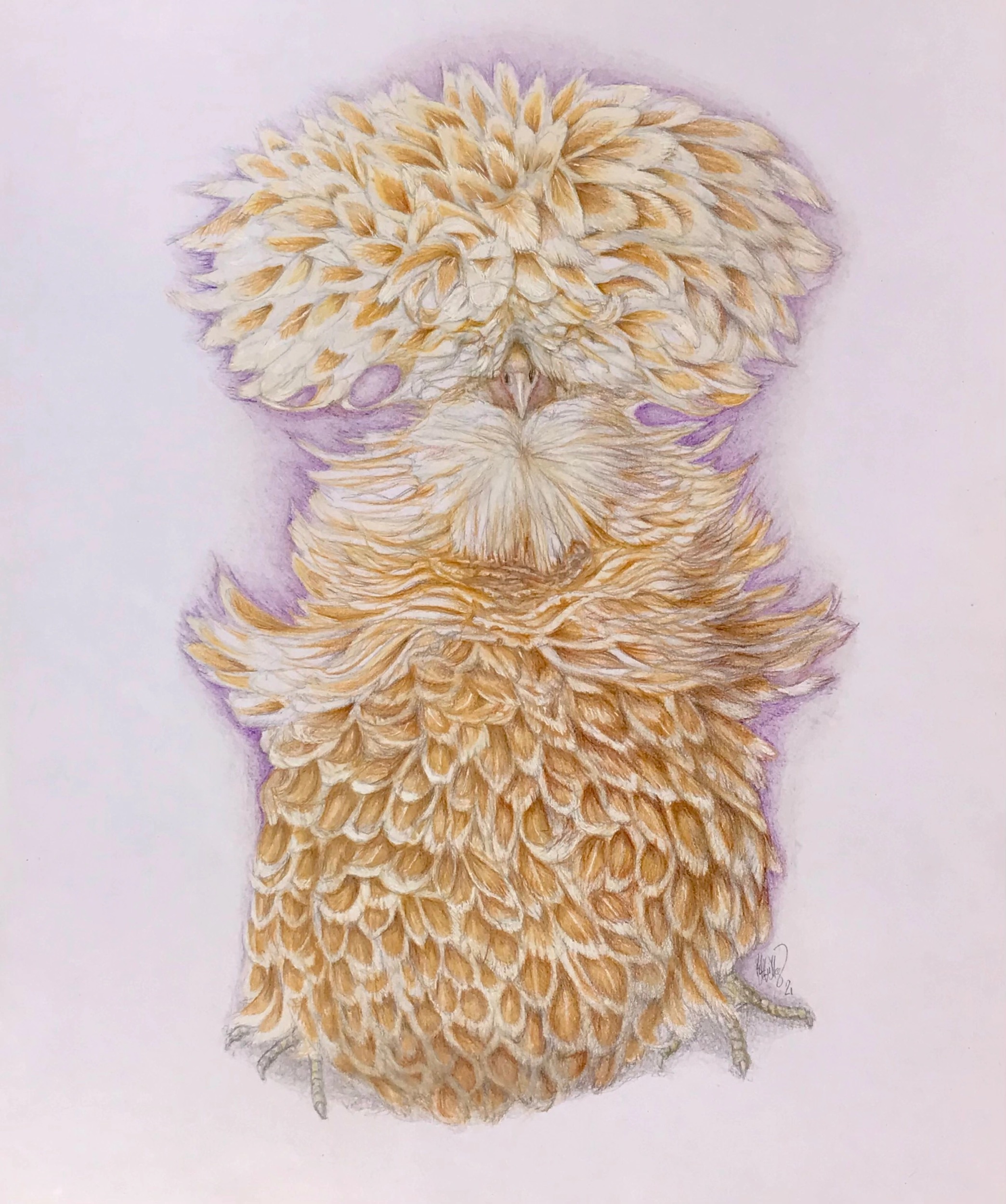 - Lace-winged Polish fancy (Gallus gallus domesticus). 14×17. $400. Posh hen.