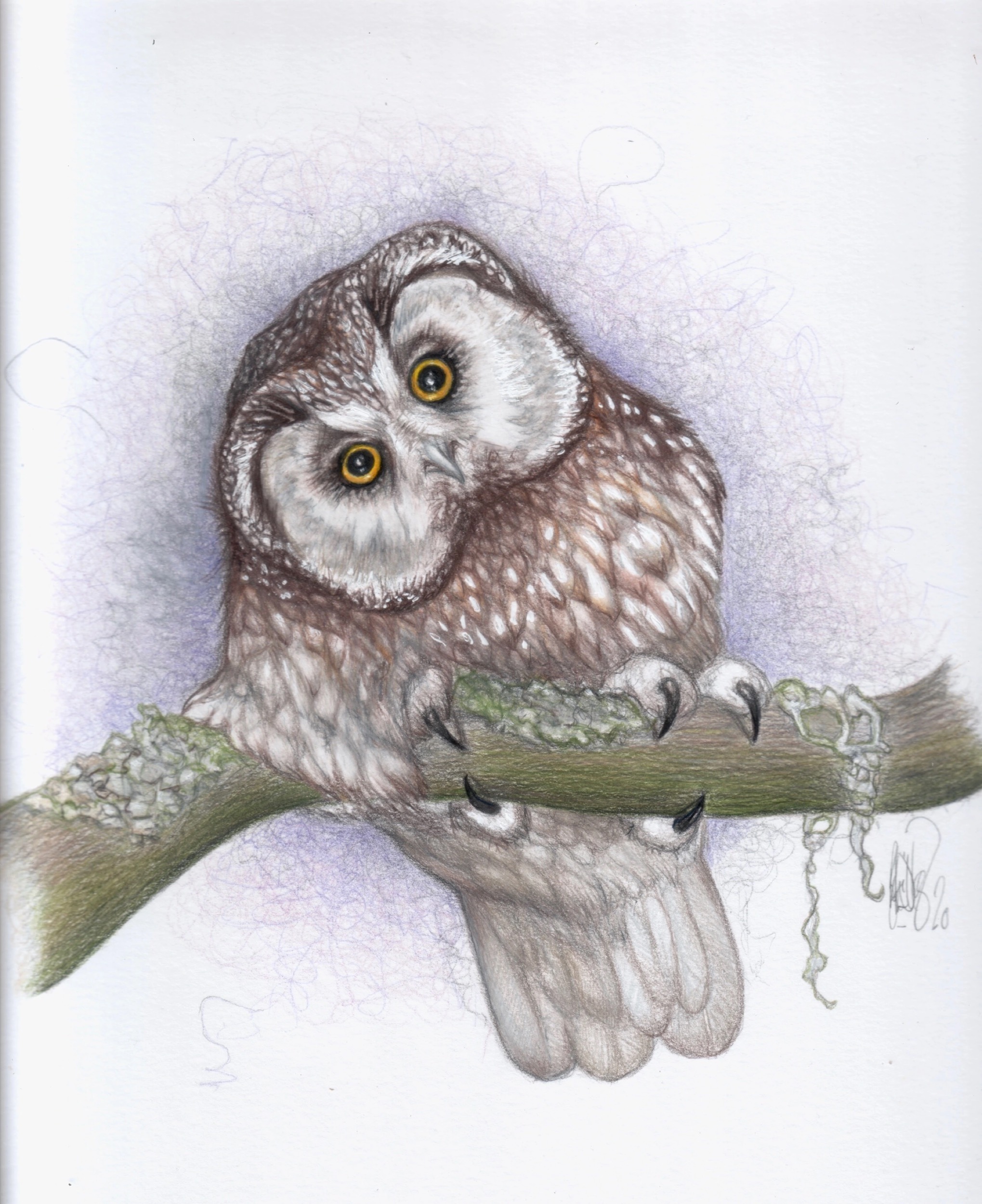 - Boreal owl/gathering dusk (Aegolius funereus). 11×14. Twilight ambassador. >SOLD<