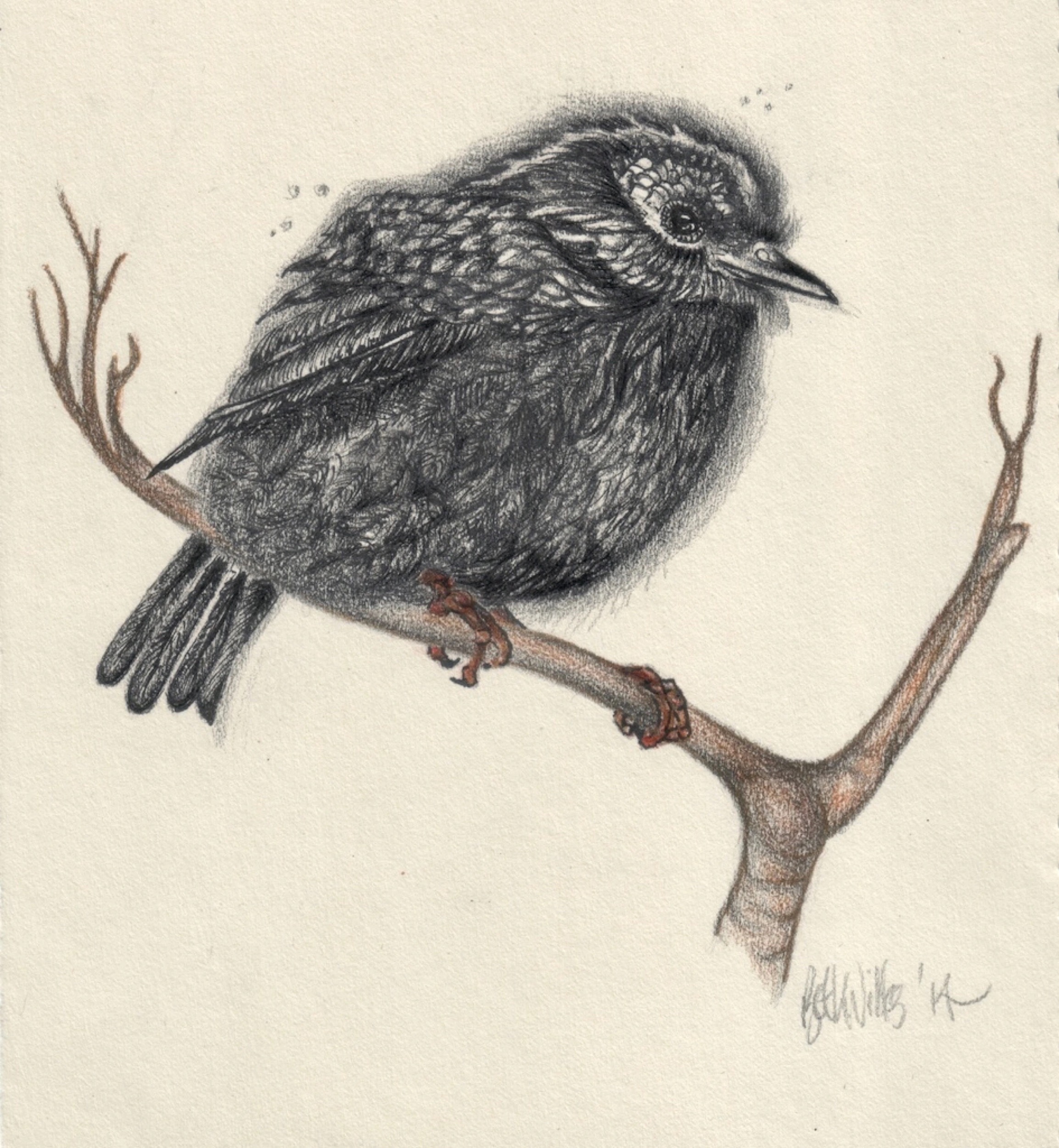 - Trio of robins triptych I: Chatham Island (black) robin (Petroika traversi). 7×9. NFS. Prints available. Kakaruia to the Māori.