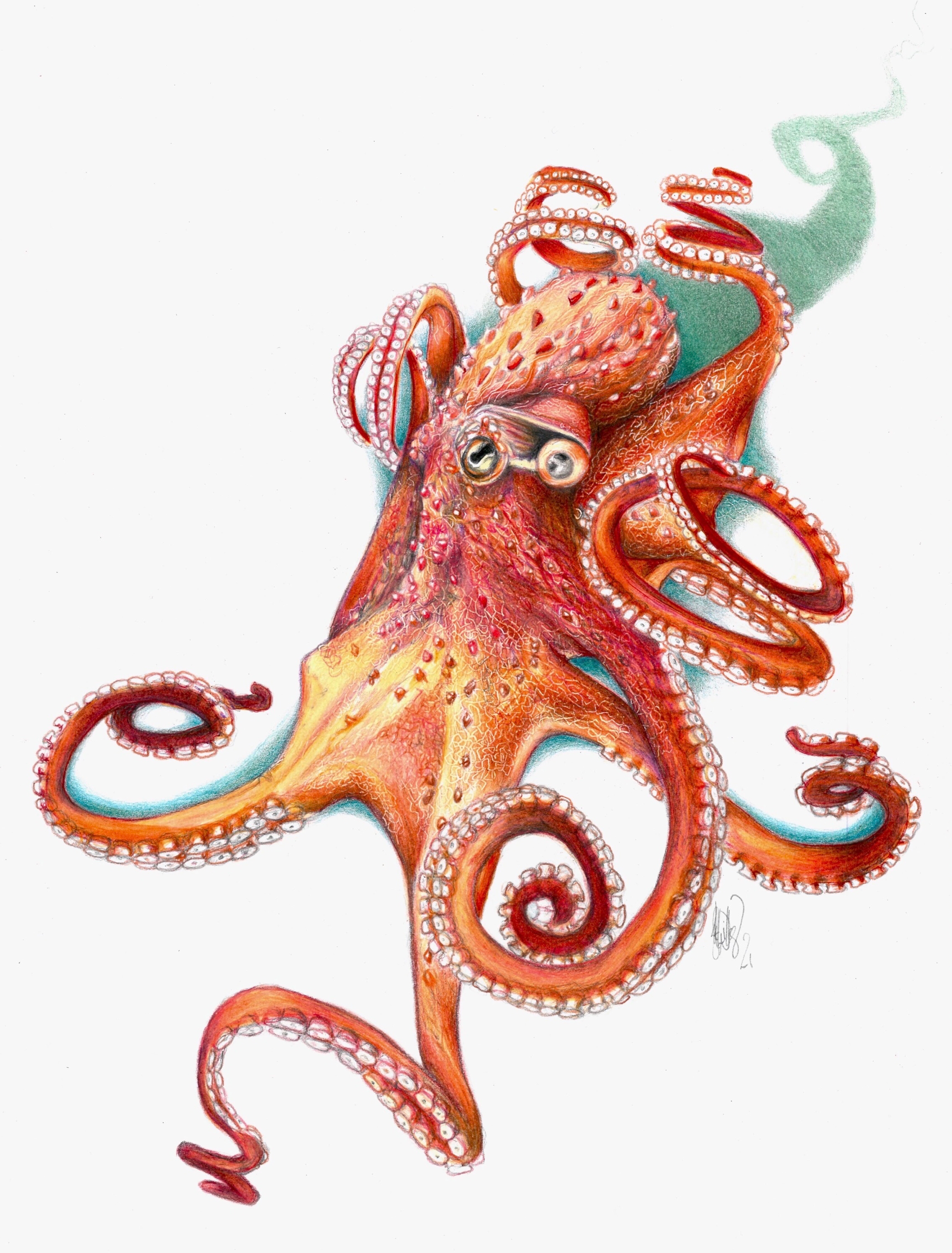 - Giant Pacific octopus (Enteroctopus dofleini). 11×14. $250. Sentient mollusc overlord. >Sold<