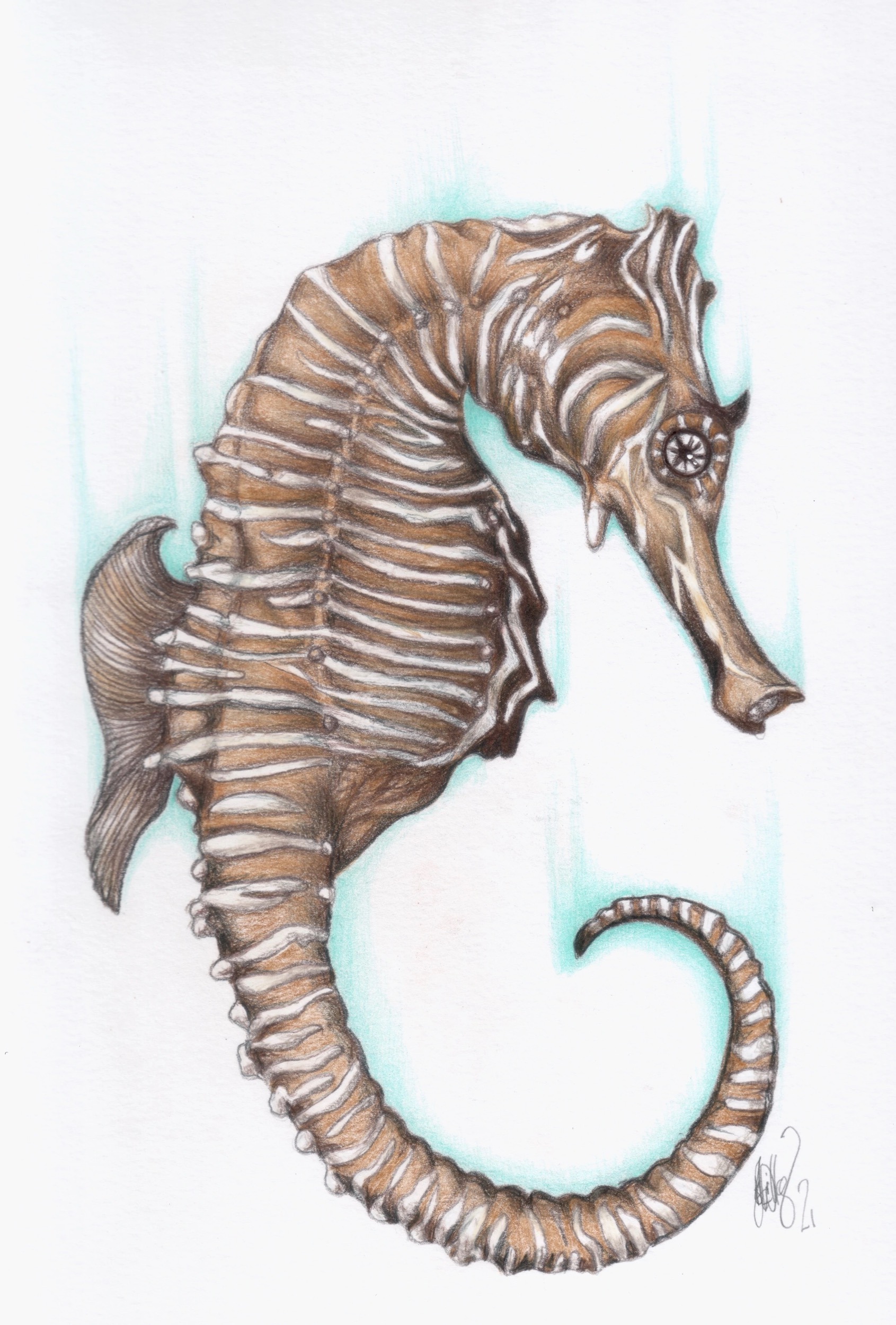 - Zebra seahorse (Hippocampus zebra). 11×14. Poseidon’s steed. Private collection.
