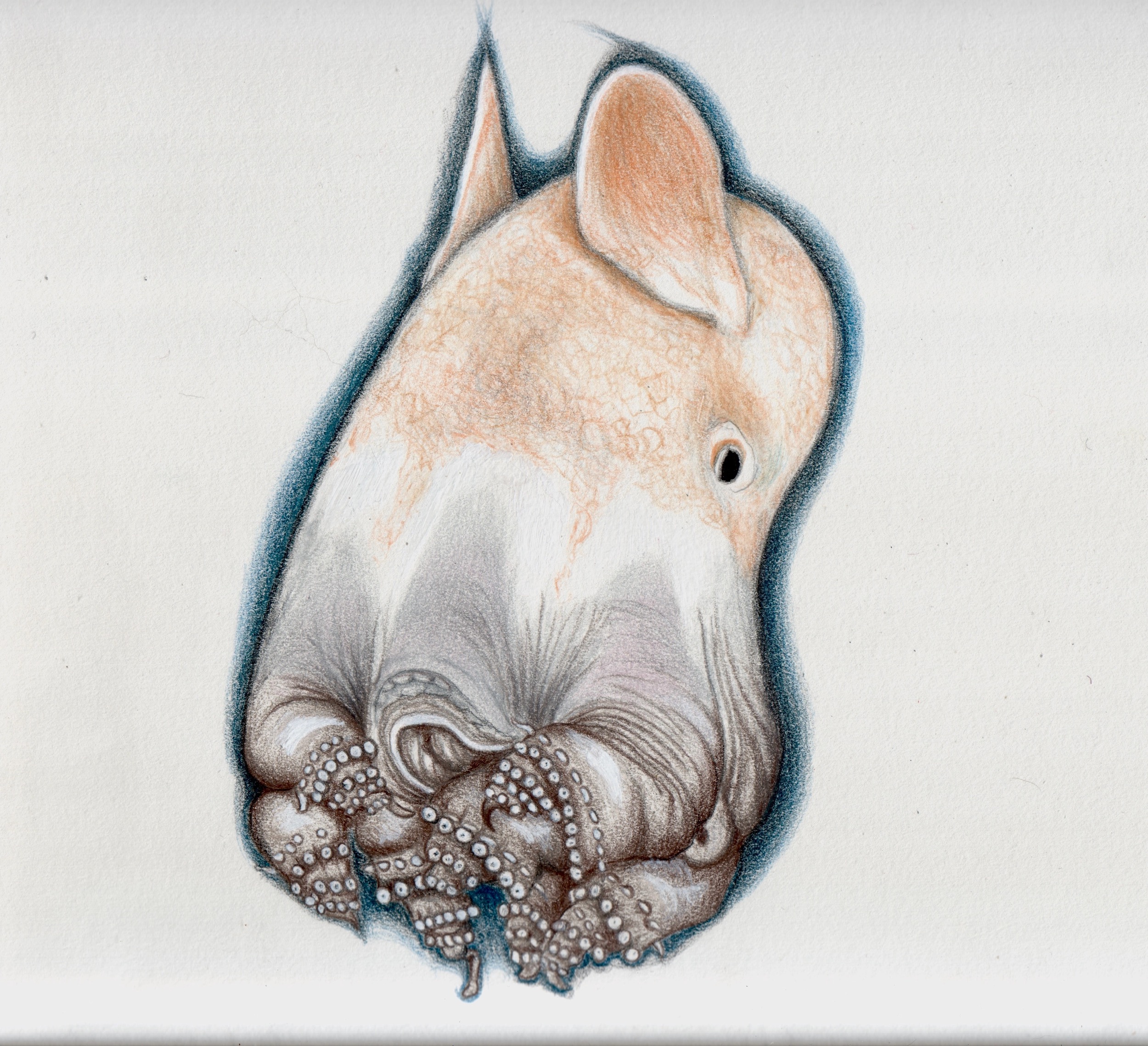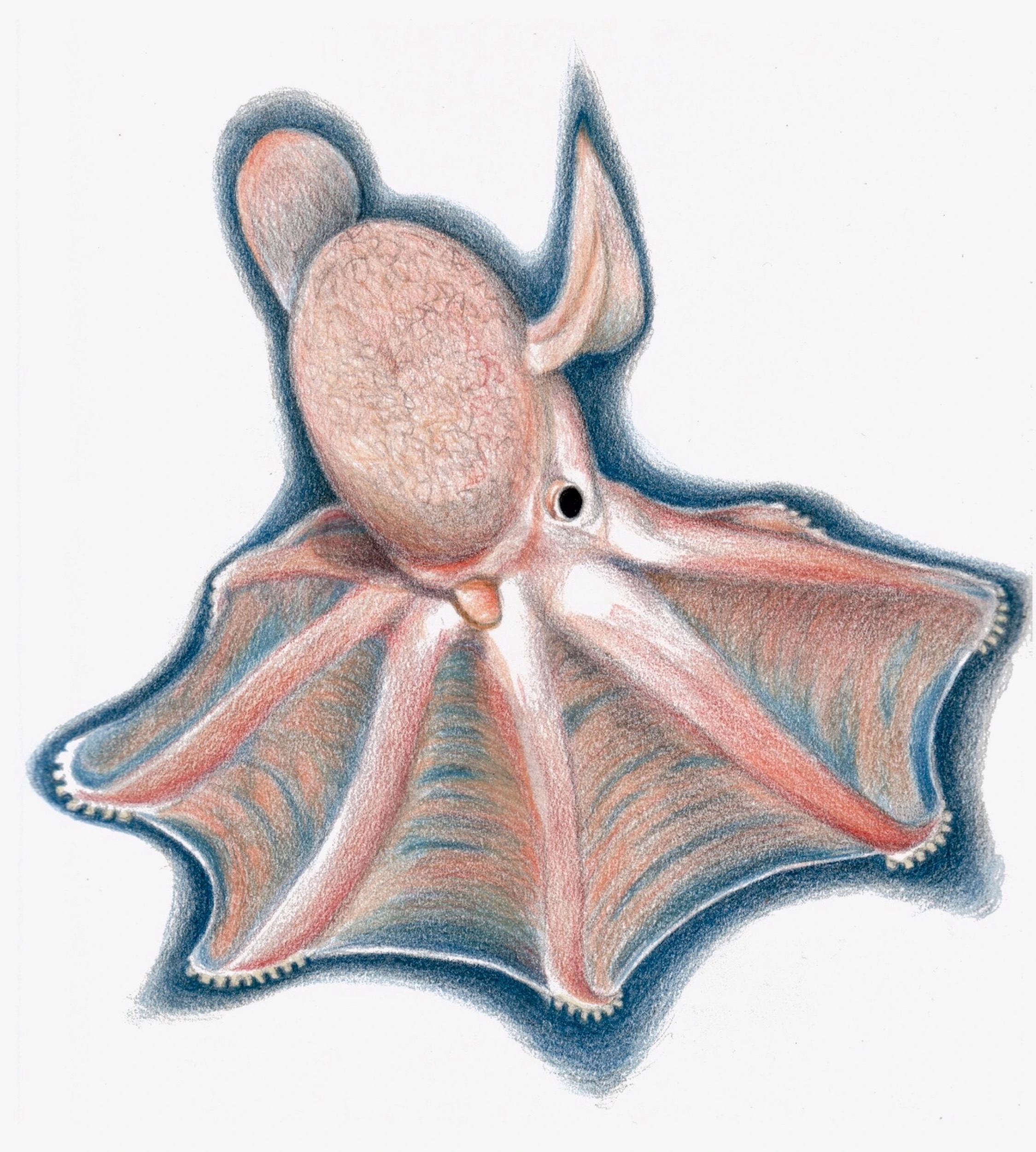 - Dumbo octopus triptych II (Grimpoteuthis umbellata). 9×12. Mysterious inhabitant of the Marianas Trench.