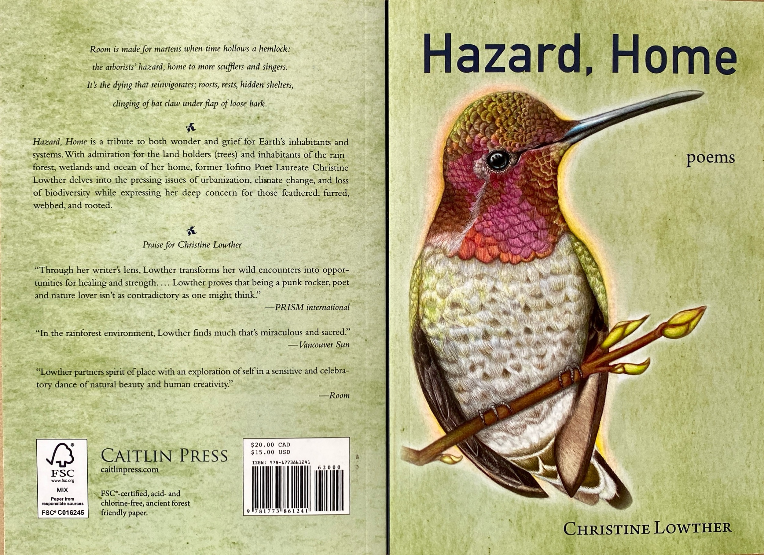 - Hazard, Home. Poems by Christine Lowther. Published by Caitlin Press, February 2024. Provided cover art plus six illustrations, reproduced in black and white, to accompany text.