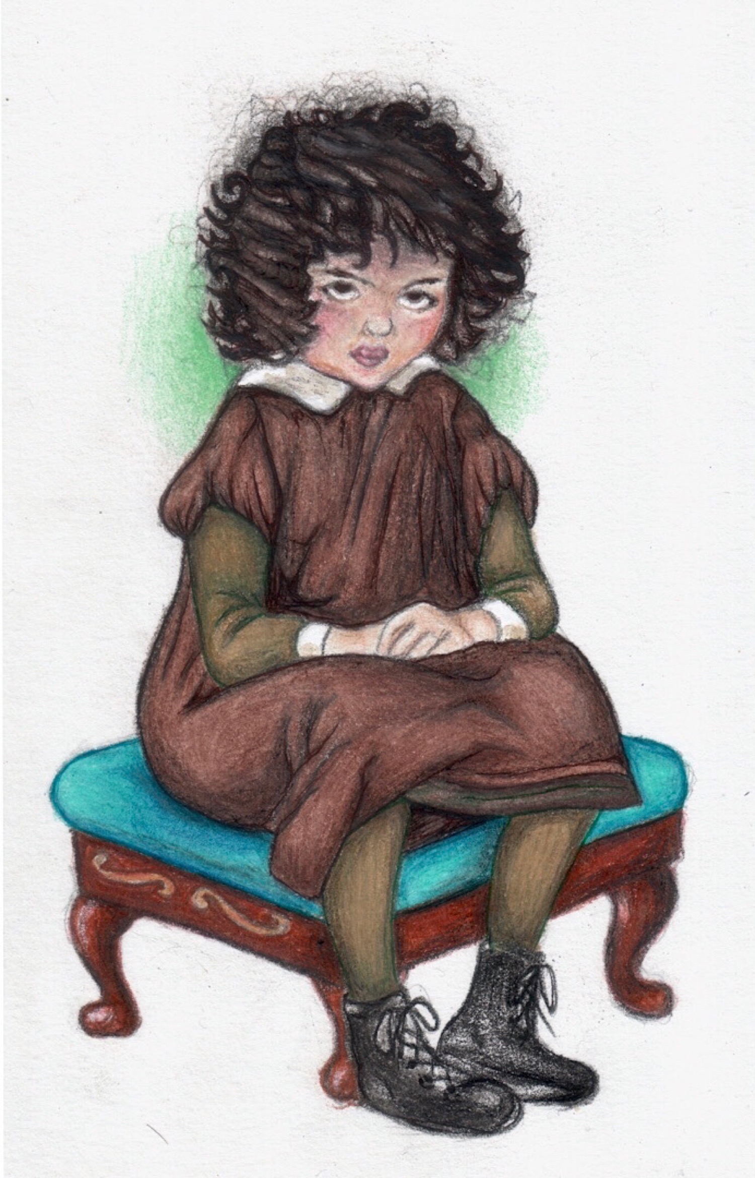 - Heidi. Reworking illustrations from the classic children’s novel, and my reluctant namesake. On my grandmother’s footstool. Graphite, coloured pencil, ink on Bristol board. 9×12.