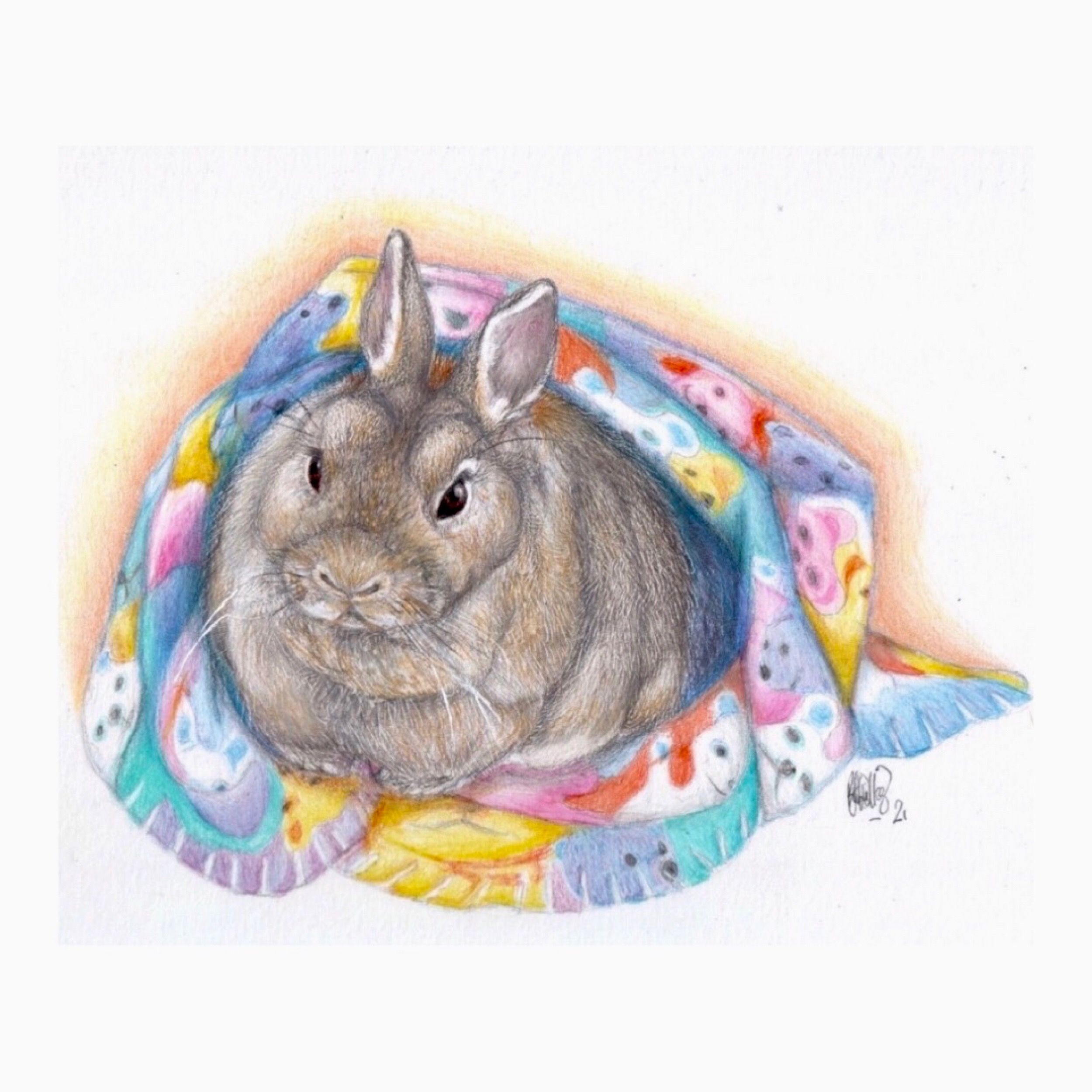 - Forever Heartly. Memorial to a lovely bunny and her favourite blanket. Graphite, coloured pencil, ink on Bristol board. 9×12.